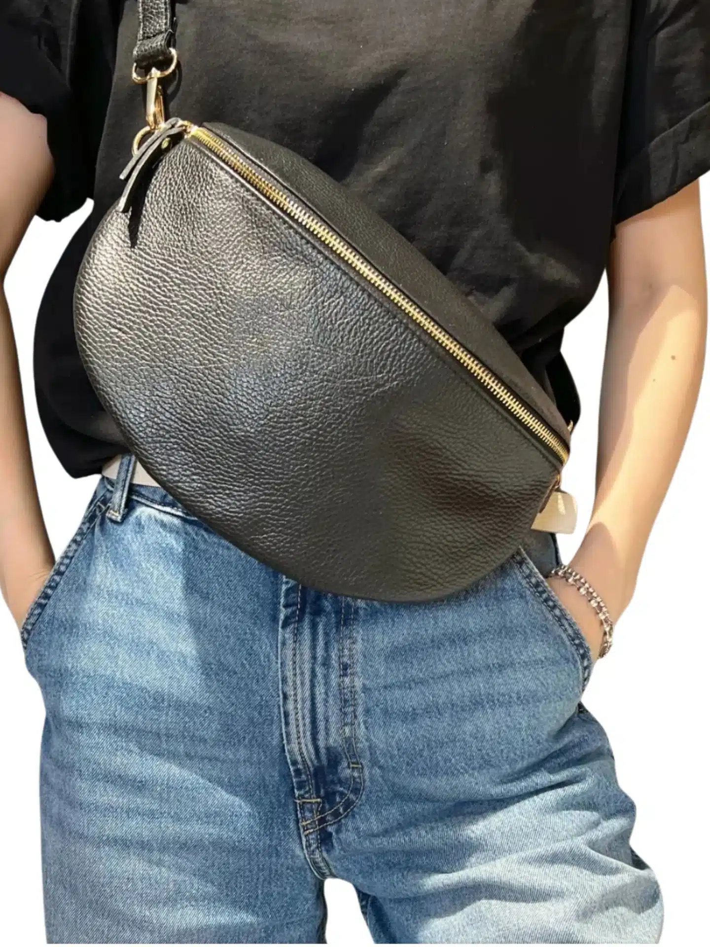 Grand sac banane en cuir grainé